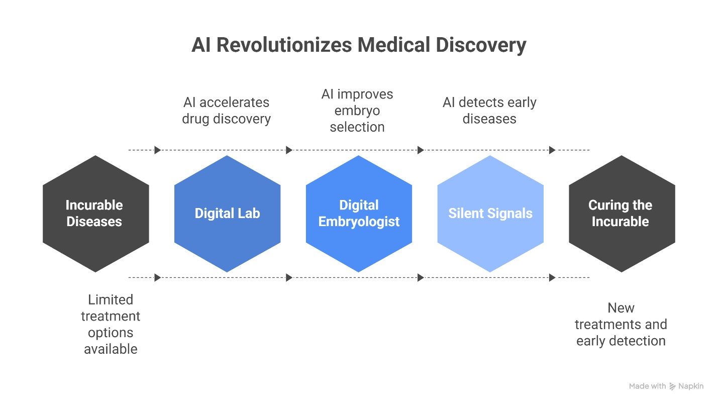 This creative power touched the most intimate corners of human life. The Digital Embryologist offered new hope to families, using AI to see patterns of life that were invisible to the human eye. We saw the magic of Silent Signals, where AI gave us the gift of foresight, detecting the whisper of neurological disease years before it could roar. As I’ve said before, the speed of discovery has now broken the old rules of expertise — my PhD took years. but now AI can do parts of my job in hours.