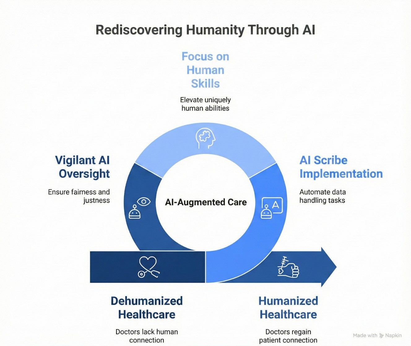 The answer came from clinicians like Dr. Emily Carter, who told me her AI scribe didn't just save her time; it "gave her back her patient and time with her family." By handling the data, the AI liberated her to handle the fear, the hope, the human connection. This is the beautiful symbiosis we must build. It requires us to be vigilant about the Hidden Dangers of AI, not to fear the technology, but to fill it with our highest values, ensuring the algorithms we build are fair, just, and serve all of humanity.