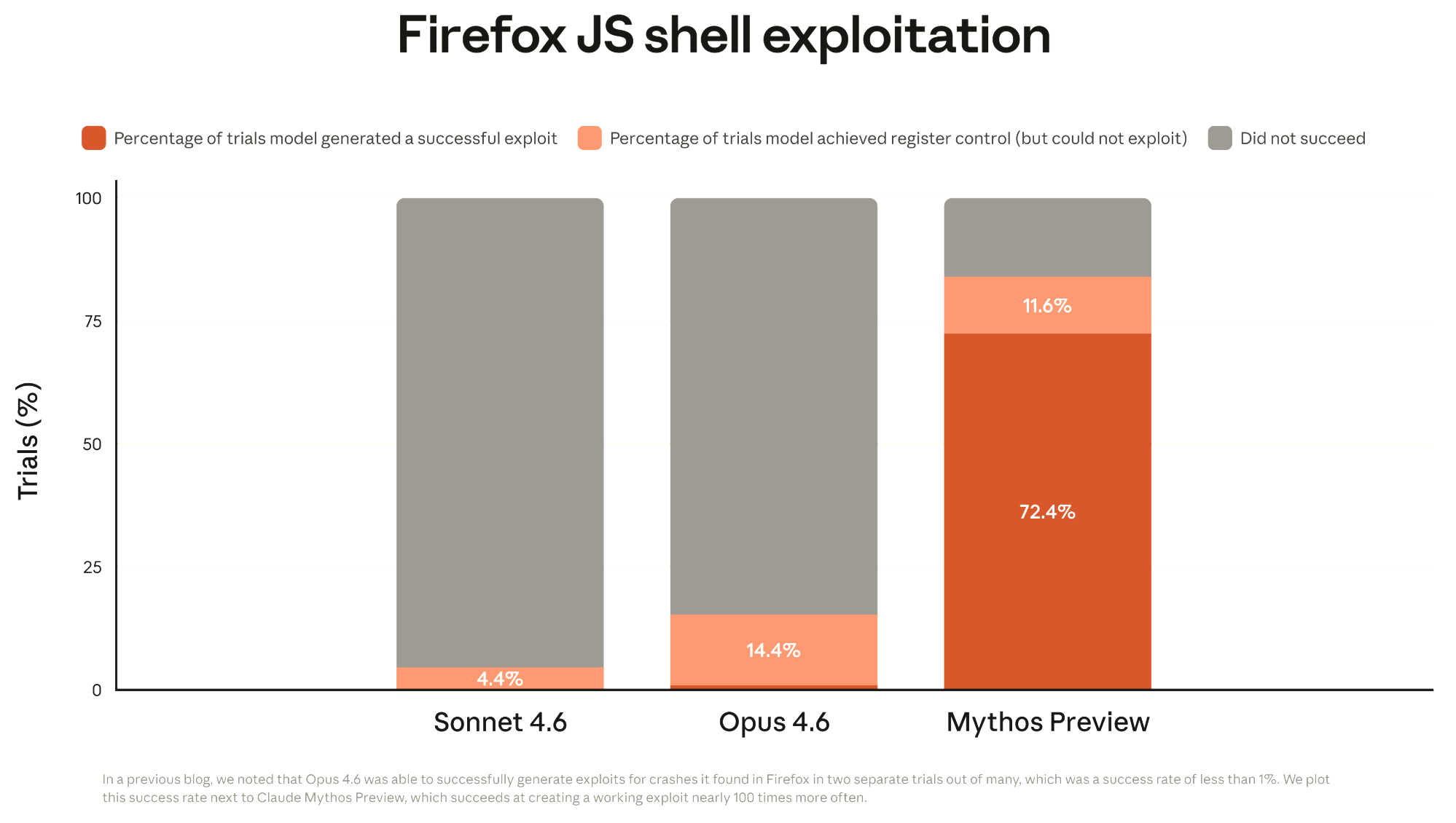 d attempts. Mythos Preview developed working exploits 181 times and achieved register control on 29 more.