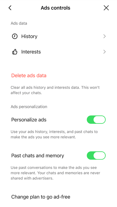 Users can customize controls, including opting into or out of personalized ads, by going to Settings > Ad Controls or by visiting this link.