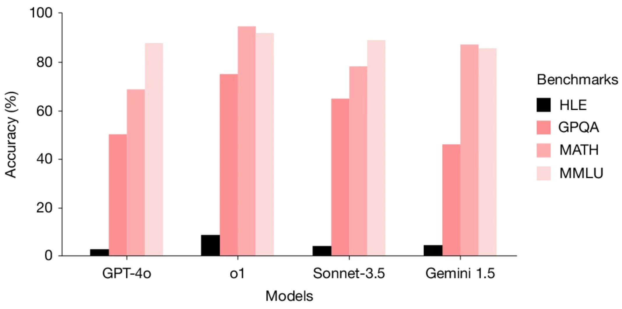 Early results from Humanity's Last Exam show even advanced AI models perform poorly on many questions.