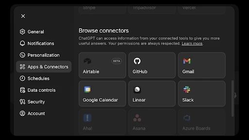 - The ChatGPT-native Airtable app now connects directly within ChatGPT conversations.
