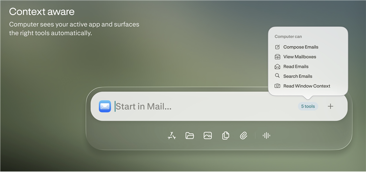 - App control: Operates Mail, Finder, Slack, and any native Mac app directly