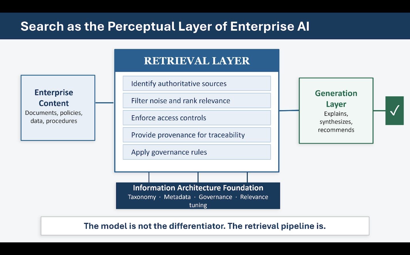 Across these examples, the same principle holds: search is the perceptual system of enterprise AI.